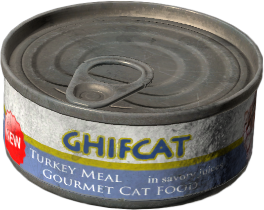 A can of food for cats. Smells like fish and chicken. In-game description