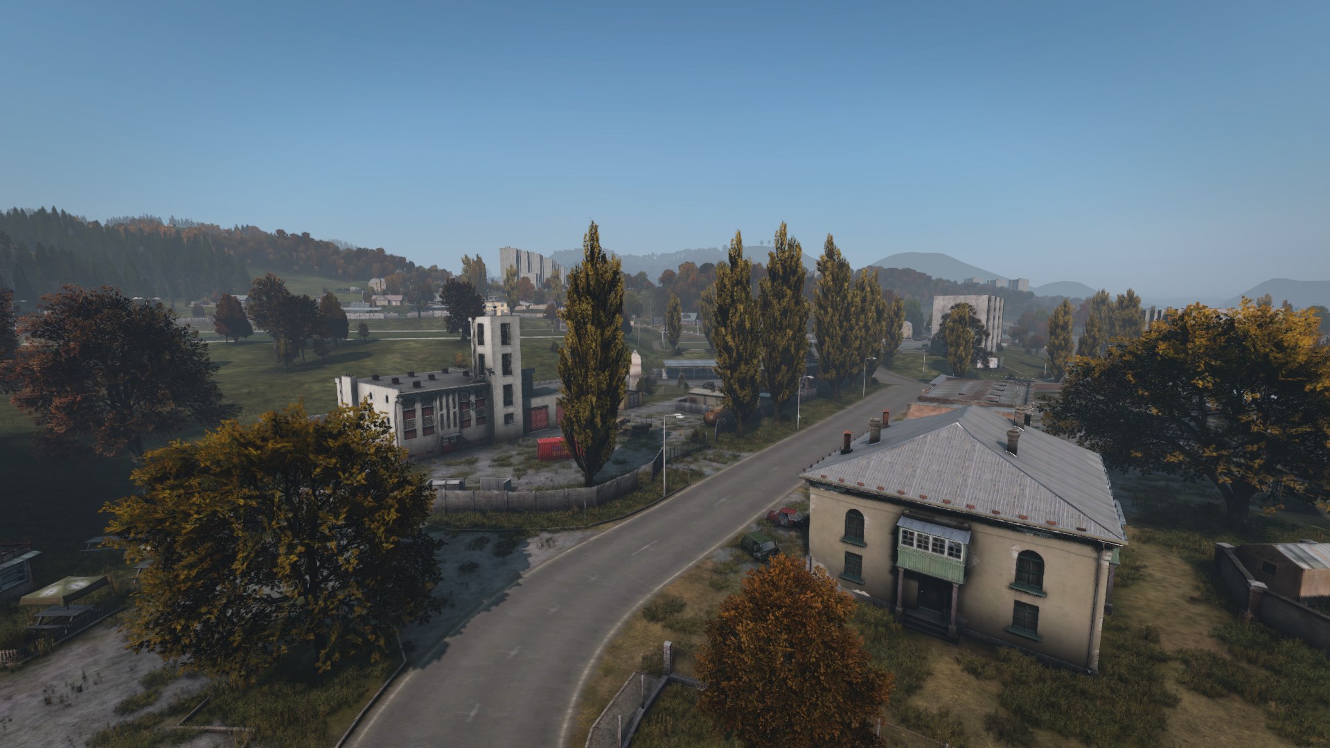 Once a small fishing village on the coast of the Green Sea, Chernogorsk rapidly expanded and industrialised in the 1950s under the rule of the Chernarussian ASSR - this period of rapid expansion is embodied in the streets of central Chernogorsk and its suburbs of Vysotovo, Novoselki and Dubovo, with the town hall, townhouses and apartment blocks all clearly influenced by Soviet-era Stalinist architecture.