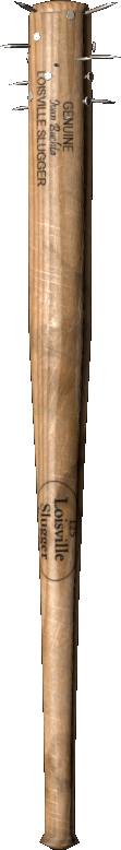 An upgraded baseball bat with several nails going through. If you're not on the receiving end, it may bring you good luck. In-game description
